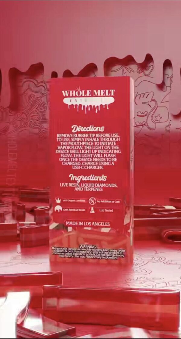 Whole Melt Cherry Belts is a potent indica live resin/liquid diamonds vape (86% THC) with rich sweet cherry flavor and a tart hint. Delivers euphoria, creativity, focus, and relief for anxiety, pain, and cramps. High potency, consume mindfully.